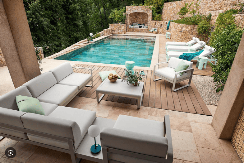 Et que dire du confort d’assise de votre canapé d’angle de jardin ? Ferme et moelleux à la fois ! L’assemblage de mousses haute résilience en est la raison. Pour couronner le tout, sa structure aluminium, recouverte de peinture polyester, ne craint ni les UV ni les intempéries, pas même en bord en mer.