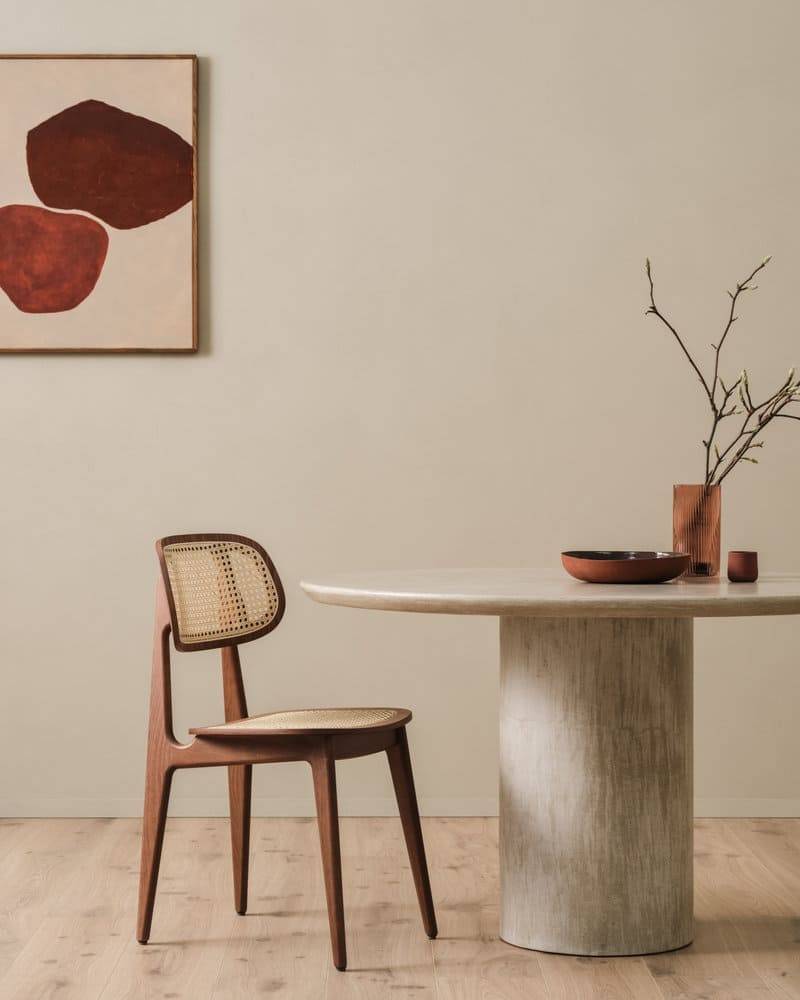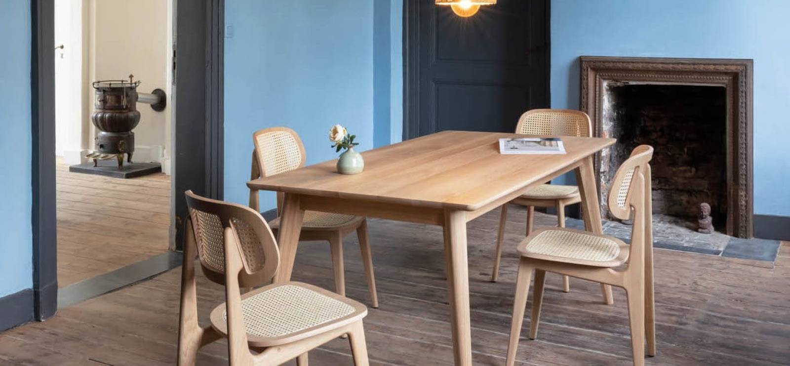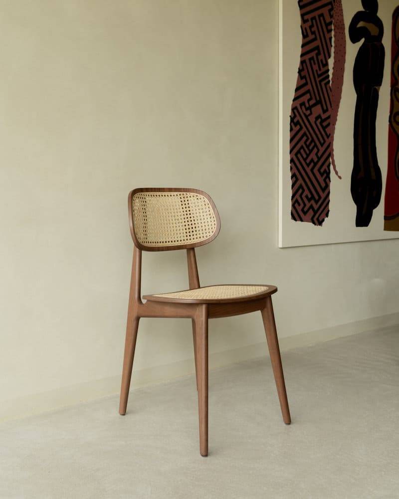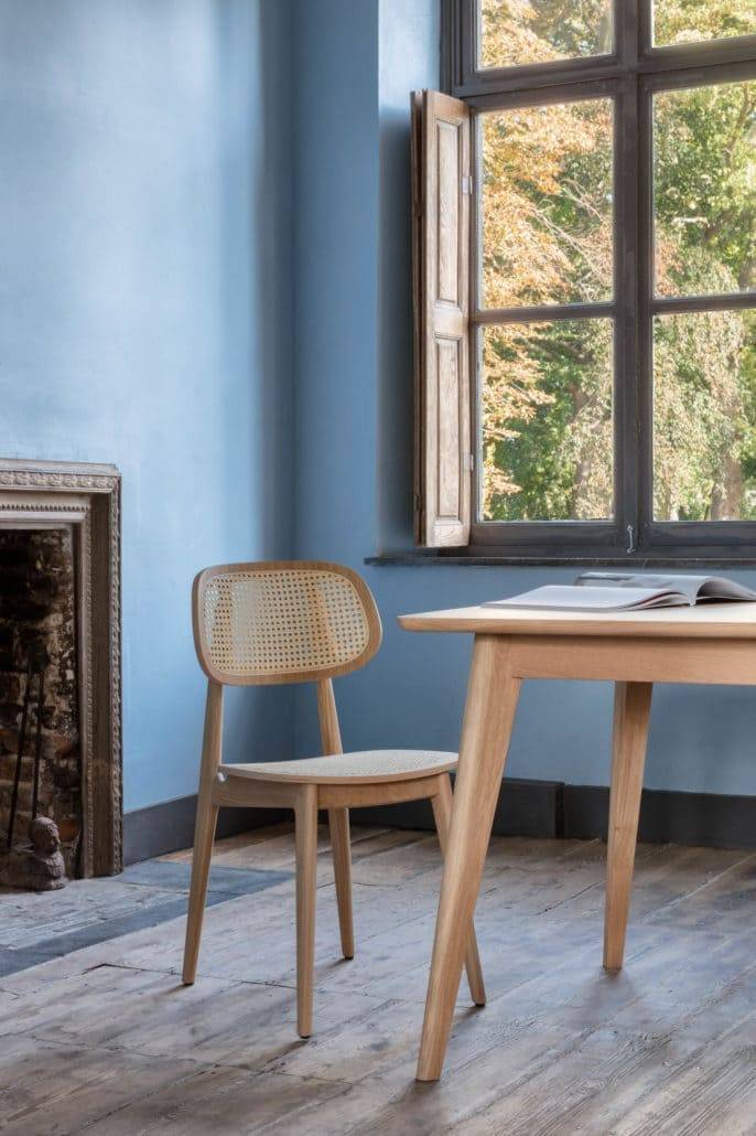 La chaise repas TITUS se compose d’une assise et dossier en cannage naturel. Sa structure est en chêne dans sa version naturel et en hêtre dans sa version noire.