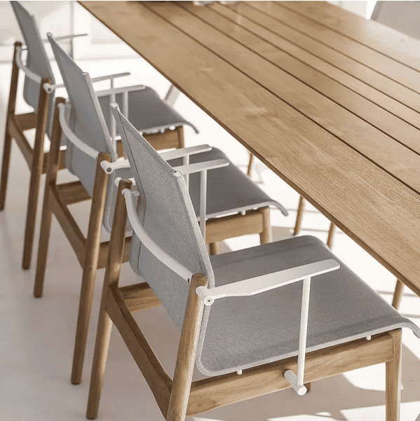 À mesure que nous passons de plus en plus de temps à dîner et à nous détendre en extérieur, Gloster a associé la structure en teck avec un tissu tendu sur l’assise et le dossier afin d’offrir un confort optimal avec ce que l’on appelle un "atterrissage en douceur".