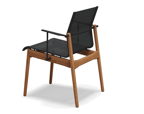 Sway fait partie du design avant-gardiste de Gloster, qui utilise des matériaux innovants ainsi que des idées et méthodes expérimentales pour créer du mobilier d'extérieur adapté à l'ère moderne. La chaise Sway utilise du teck avec une finition naturelle pour sa structure, auquel s’ajoutent des accoudoirs et un dossier en acier inoxydable thermolaqué, disponibles en deux couleurs : blanc ou météorite.